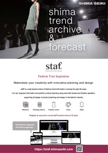 Leading computerized knitting machine manufacturer SHIMA SEIKI MFG., LTD. of Wakayama, Japan has launched its Shima Trend Archive & Forecast (staf) site, a web-based service dedicated to empowering its members with the means to search and download from a rich stock of information as well as tools to organize that information to aid in fashion planning, design and presentation.